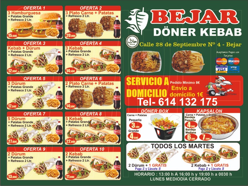 Béjar Doner Kebab Menu